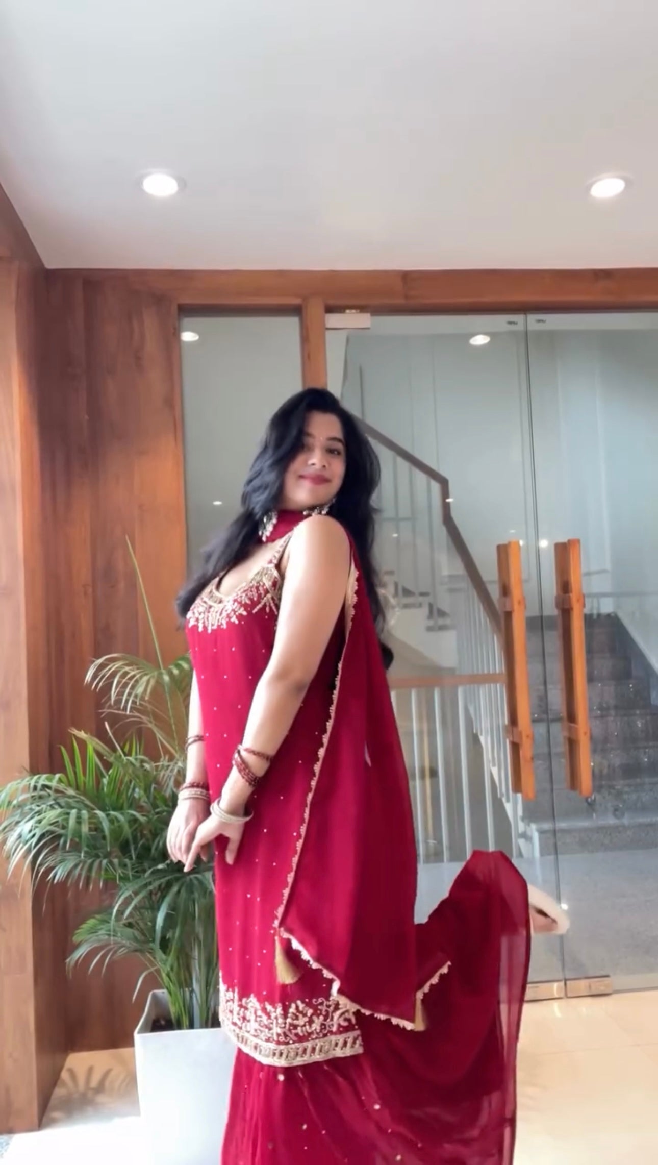 Red Designer Embroidered Sequence Sharara Suit Set